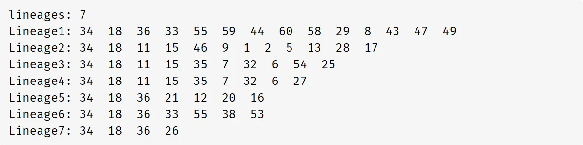 By comparing the author's lineages table, we can see a perfect concordance between the two analyses.