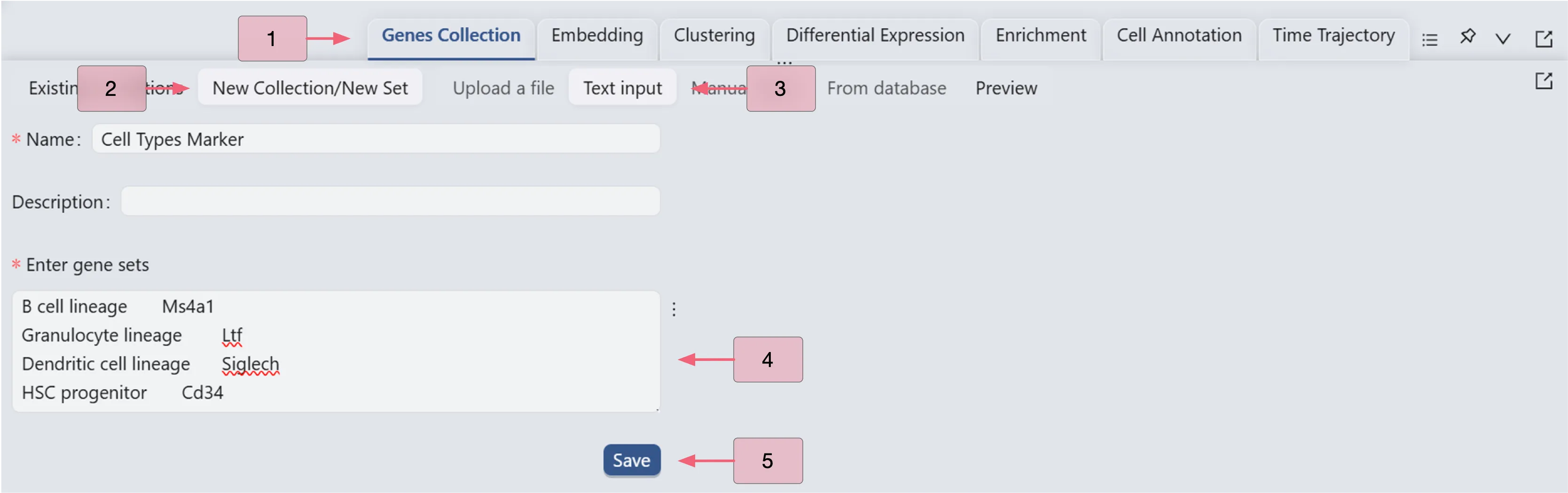 For more details on the various methods to create a new Gene Set Collection and manage existing gene collections, refer to Gene Set Collection.