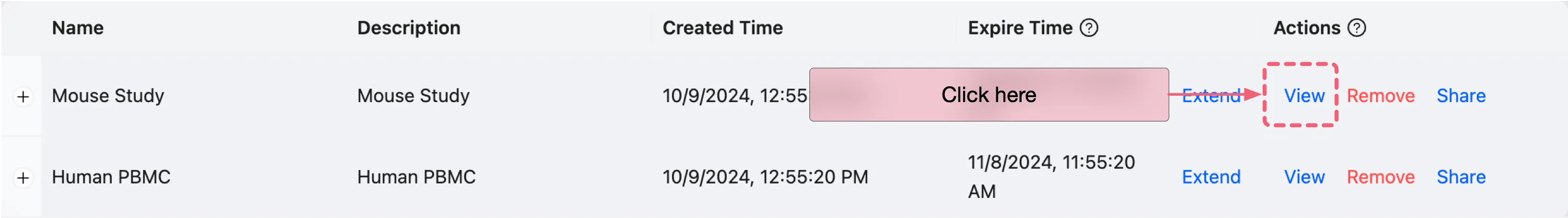 To access the Data Upload page of a study, click on the View button of the study in the Study Management page.