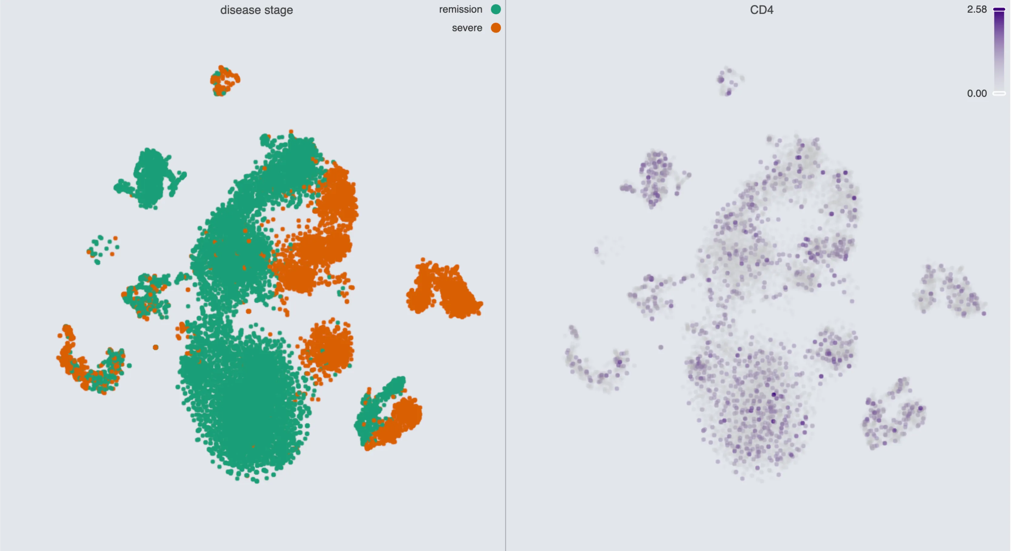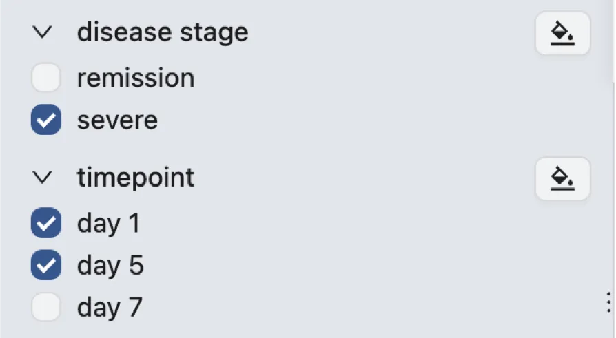disease stateandtime pointlabels. Note that you do not need to visualize the label for the selection to take effect.