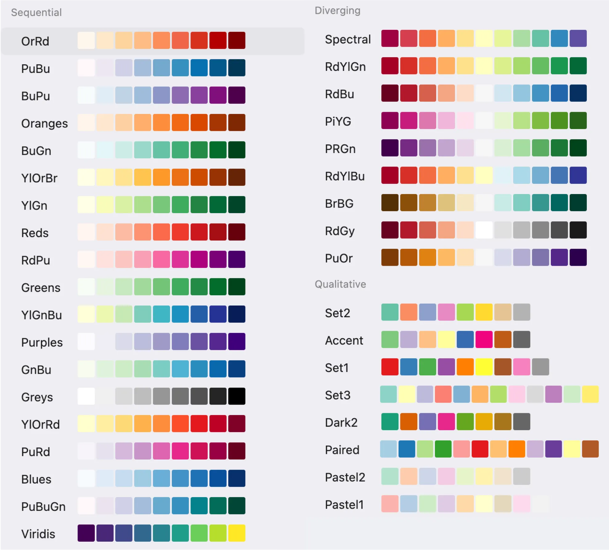 Color: The color mapping used in the plot. Depending on the chart type, the color mapping can have two types: