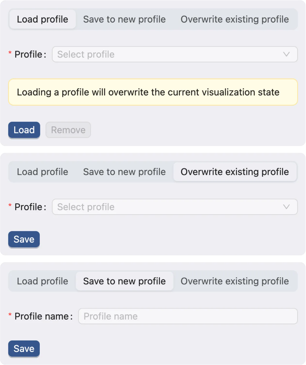 Overwrite existing profile: Save the current visualization state to an existing profile.