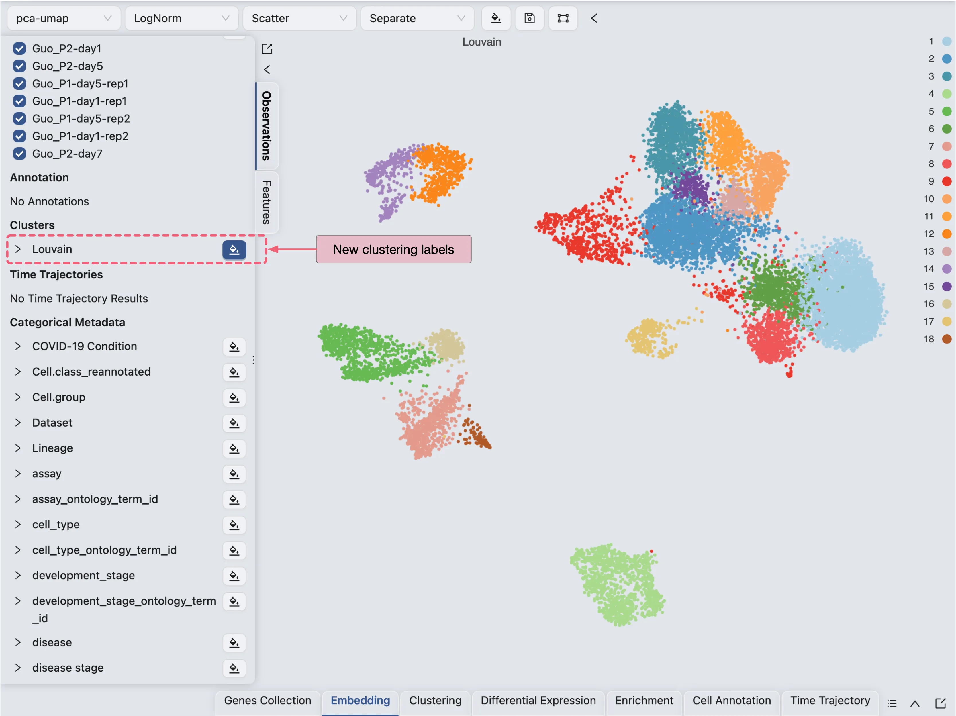 New Clusteringbutton.Select the new embedding for