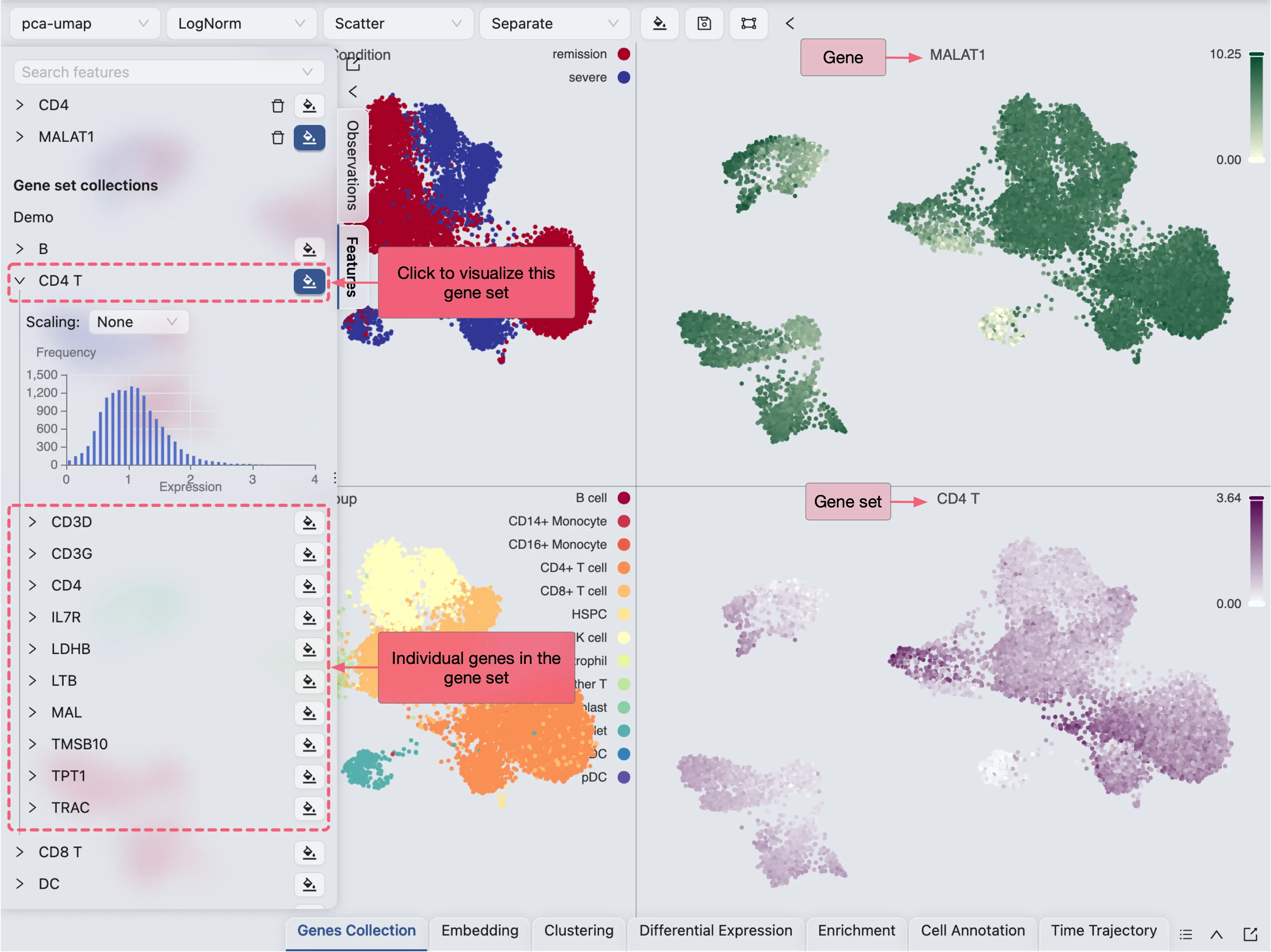 To visualize a set of genes or features, we first need to create a gene set collection. Visit Gene Set Collection for more details on creating gene set collections. In this tutorial, we will use an example gene set collection.