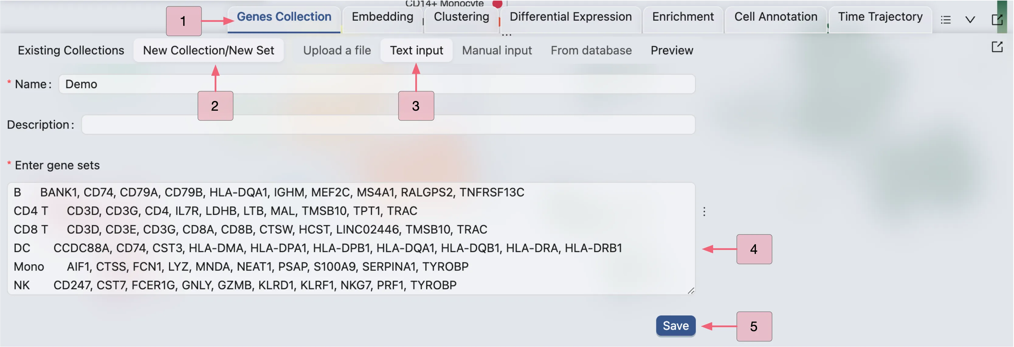 Gene Set Collectiontab on the Bottom DrawerClick on New Collection to create a new gene set collection